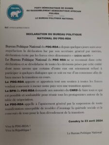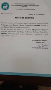 Le Bureau Politique PDG RDA vient de suspendre son Secrétaire général par intérim Oyé Béavogui