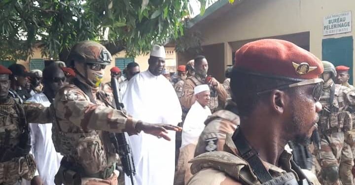 C’est aux environs de 8h 30mn, que le chef de la junte militaire guinéenne le Général Mamadi Doumbouya, vêtu d’un boubou blanc, a fait son apparition à la grande mosquée, en compagnie de Karamo Bangaly Kaba, 1er imam de la grande mosquée de Kankan.