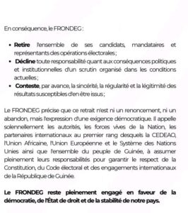 Élections législatives et communales du 31 mai 2026: Le FRONDEG de Abdoulaye Yéro Baldé annonce son retrait du processus électoral en cours